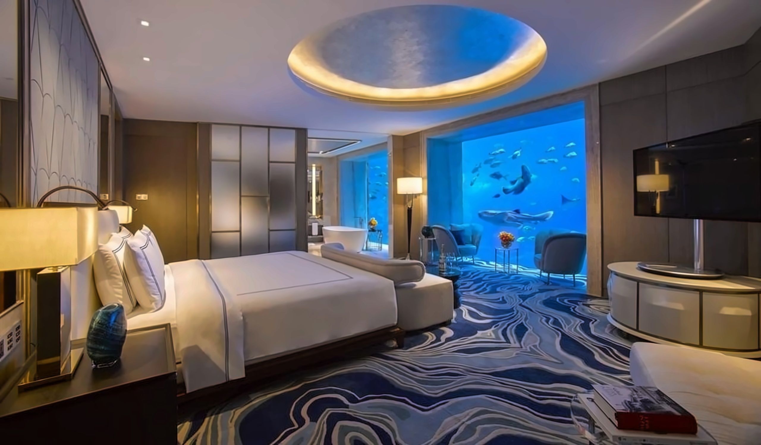 A vendégek modern szobákat és luxus lakosztályokat élvezhetnek, beleértve egy egyedülálló víz alatti lakosztályt, ahol üvegen keresztül figyelhetik meg a cápák és ráják úszkálását. Számos étterem kínál helyi és nemzetközi konyhát, valamint bárok kínálnak frissítő italokat a helyszínen.