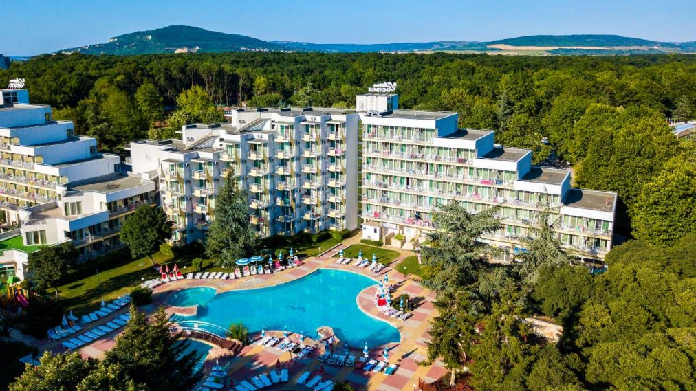 A Laguna Garden Hotel az Albena üdülőhely központjában, a sétáló- és bevásárló sétány mellett, a strandtól kb. 130 méterre található.