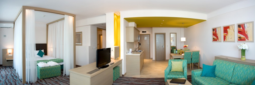 - Apartman "Panorama Superior" - 96 m2. - Panorámás egy- és kétszobás apartmanok- 9. és 8. emelet. Panorámás kilátás a tengerre és a medencére. Ágyak száma az egyszobás apartmanokban: 2 db 100/200-as méretű ágy, amelyek összecsatlakoztathatók, és egy kihúzható kanapé. Az ágyak száma a kétszobás apartmanokban: hálószoba -> 2 db 100/200-as ágy, amelyek összecsatolhatóak; közös helyiség -> 1 db 140/200-as ágy és egy kihúzható kanapé.