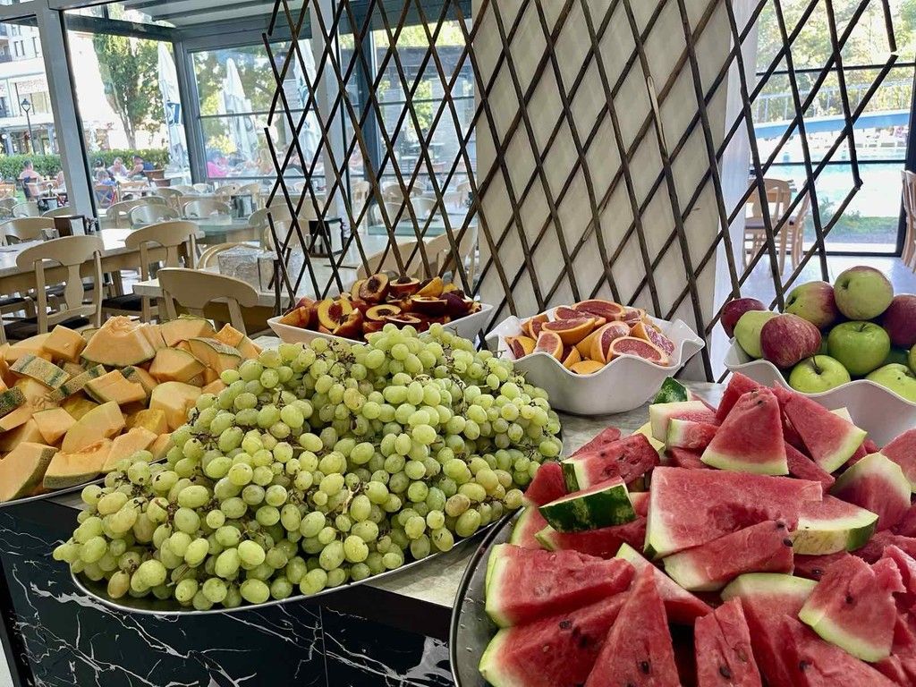 Üdítők - Coca-Cola, Fanta, Sprite, tonik, szénsavas víz, ásványvíz, különféle természetes gyümölcslevek, sör, bor, helyi termelésű alkoholos italok - vodka, gin, brandy, brandy, menta, masztix, rum és különféle röviditalok.