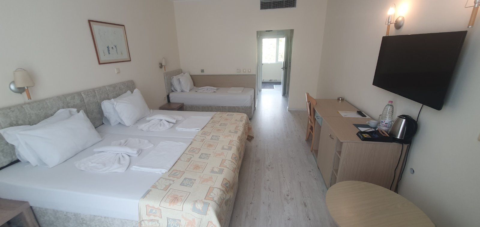 Kétágyas szoba (kb 29 m2): franciaágy vagy 2 egyszemélyes ágy, egyéni klíma, műholdas TV, telefon, minibár, erkély, fürdőszoba zuhanyzóval, zuhanyzóval vagy káddal, hajszárítóval.
