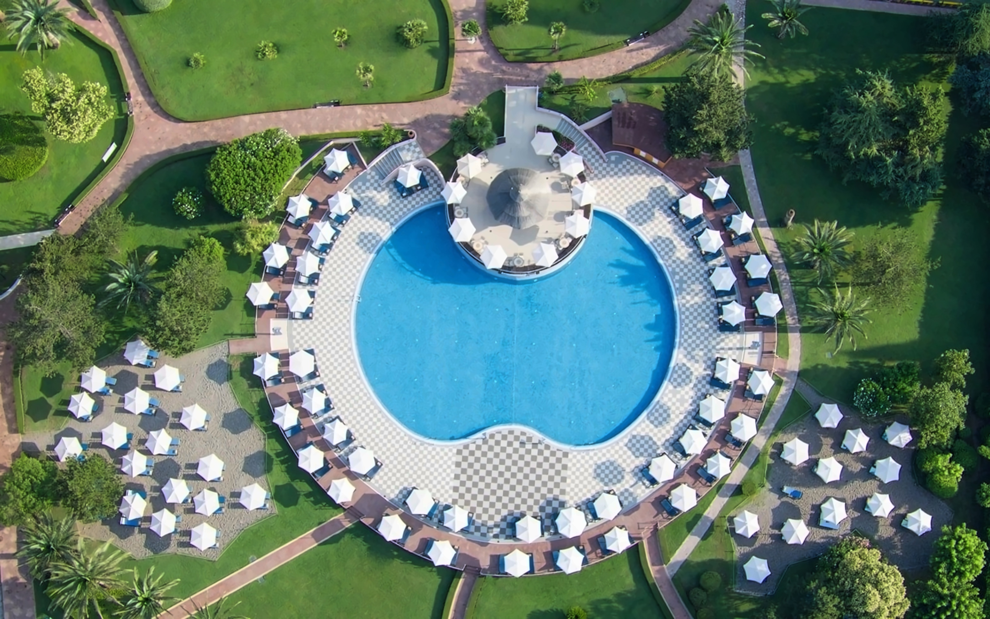 A medence melletti napozóágyak és napernyők ingyenesek.