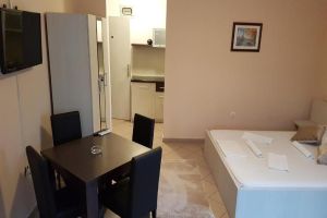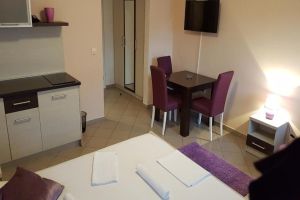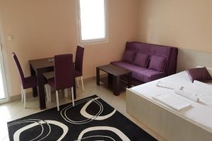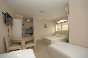Stúdió 02+1: 25-28 m2 + erkély, franciaágy, kihúzható fotelágy, konyhasarok, fürdőszoba zuhanyzóval. A stúdióban legfeljebb 3 fő (2 felnőtt és egy gyerek) szállásolható el.