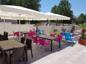 - Kültéri medence relaxációs részleggel, napozóágyakkal és napernyőkkel